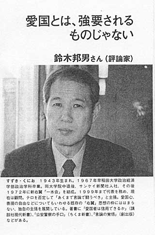 私は、この映画を見て、素晴らしい映画だと思った。だから映画のチラシにも「推薦文」を書いた。それだけの覚悟を持って書いた。そして、配給会社の人に言った。右翼が攻撃してきたら、「同じ右翼の鈴木が推薦してるじゃないか。文句があるなら鈴木のところへ行け。鈴木をやっつけろ!鈴木を殺せ!」と。そう言ったらいい。私を突き出せ。私はいつでも「人身御供」になる。そう言った。