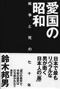 本の題名です。『愛国の昭和』です。サブタイトルは「戦争と死の七十年」です。本を手に取って、異様な感じがするでしょう。ギョッとするでしょう。真っ黒な本です。死です。葬式です。〈遺書〉らしくていいでしょう。あの有名な「鈴木成一デザイン室」がブックデザインをやってくれました。天才です。私は何も言いませんでしたが、私の〈遺志〉を汲み取って、こんな素晴らしい死のデザインをしてくれたのです。発売は講談社です。途中、何度も「やめよう」「引き返そう」と思いました。こんな本を出したら何と批判されるか分からない。全国民から総スカンだ。一水会にもいられない。いや、「国賊だ!」「売国奴め!」と右翼に殺されるでしょう。でも、殺される前に死んでしまえば、テロも無効です。怖いものはありません。そう心を決めて書き、出版しました。