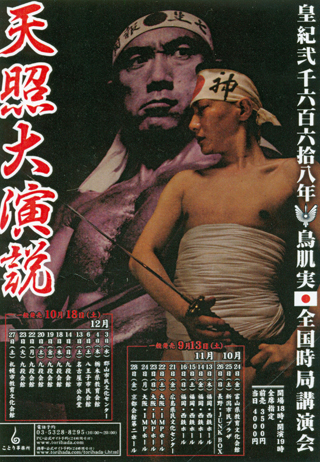 ②その三島に続いて決起しようとしてるのが鳥肌実です。九段会館を一週間も満員にしました。私も、「玉砕」Tシャツと竹槍ストラップを買いました。12月18日(木)の夜ですね。終わって、いろいろとお話をしました。写真を撮ったので、「携帯の“待ち伏せ”に使います」と言いました。「待ち受け」じゃないの。「待ち伏せ」は鈴木さんたちが左翼を襲って、埋めた時の話でしょう、と言われた。そうか。「待ち伏せ」も、しばらくやってないな。きっと腕も落ちただろうな。トレーニングしなくっちゃ。